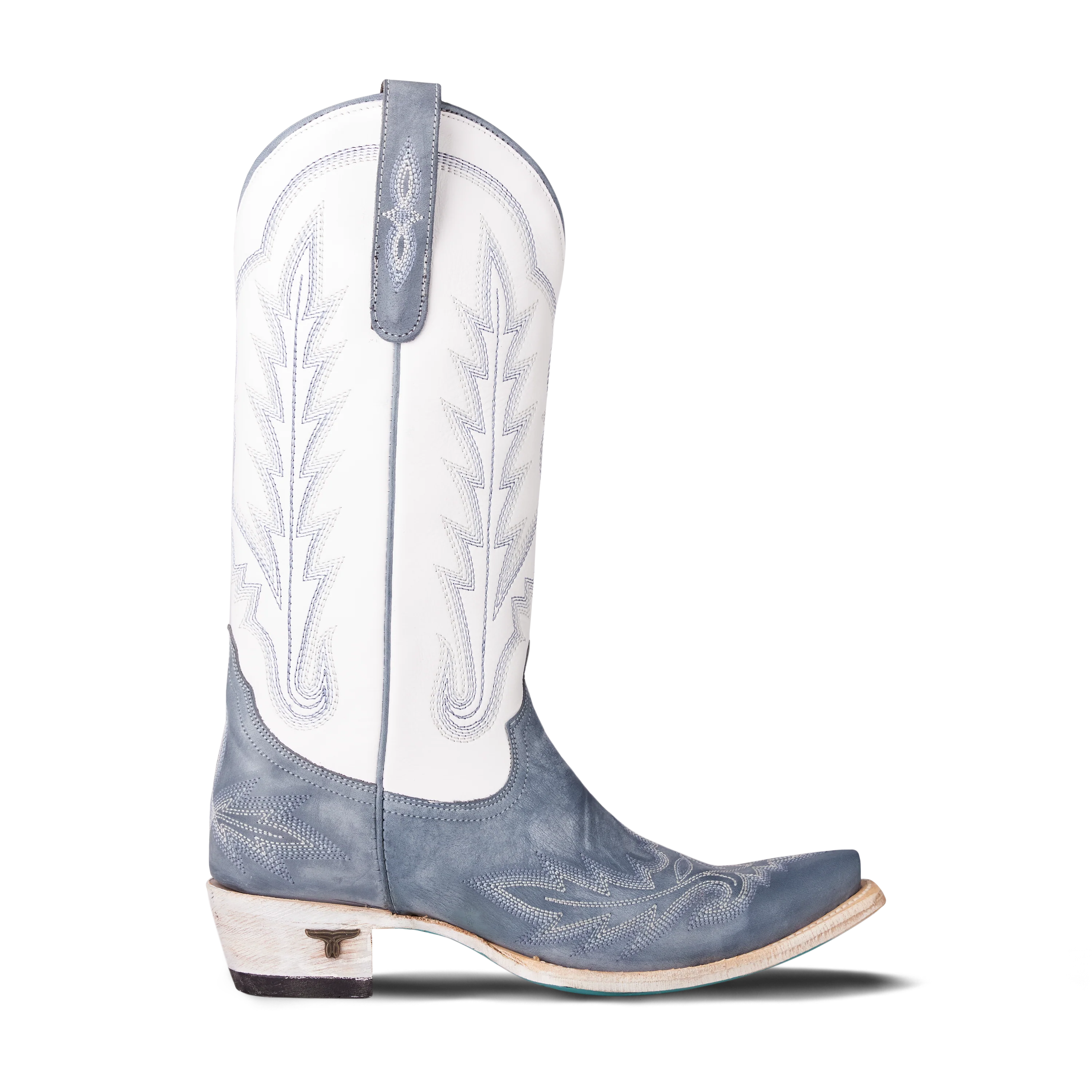 Effortless, cool, and endlessly wearable, our color-blocked Lexington Boot featuring Washed Denim and Matte White delivers a laid-back twist on our iconic women’s cowboy boot. This two-tone design blends a soft, worn-in denim blue with a clean matte white shaft for a look that feels relaxed and refined.